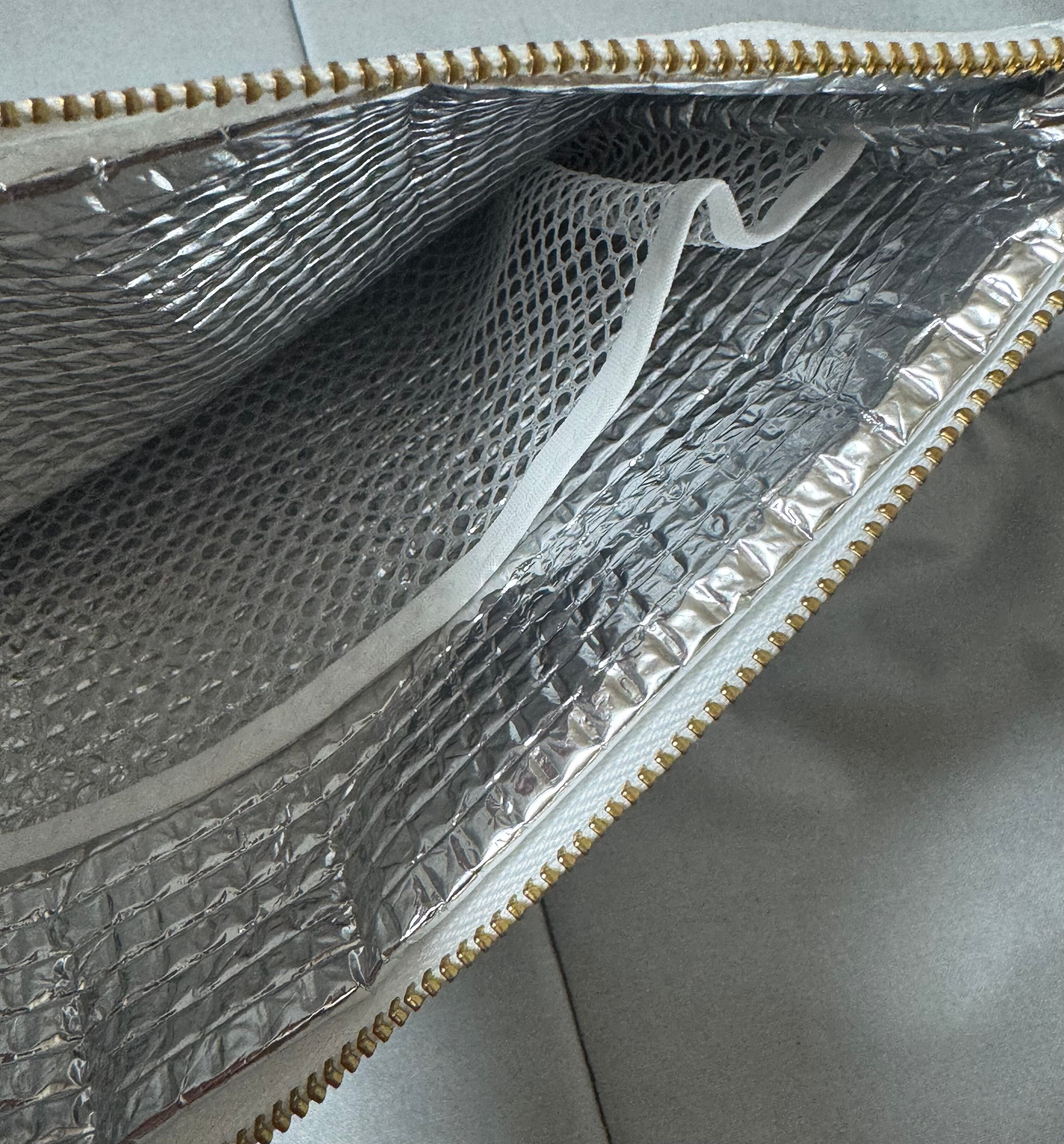 保冷剤が入るメッシュポケットも付いており、長時間の外出でも冷たさをキープ!